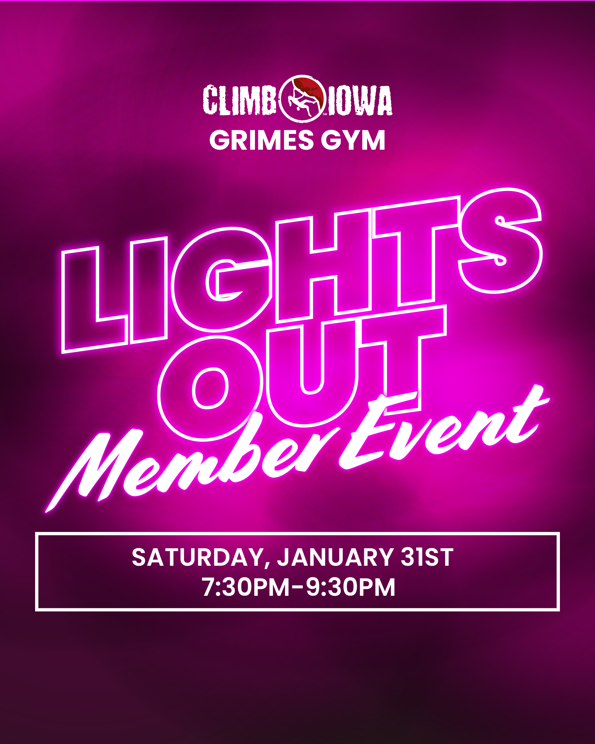 Bring your headlamp and come climb in the dark! We’ll be turning off the gym lights for a night of climbing with headlamps! Spots are limited!
